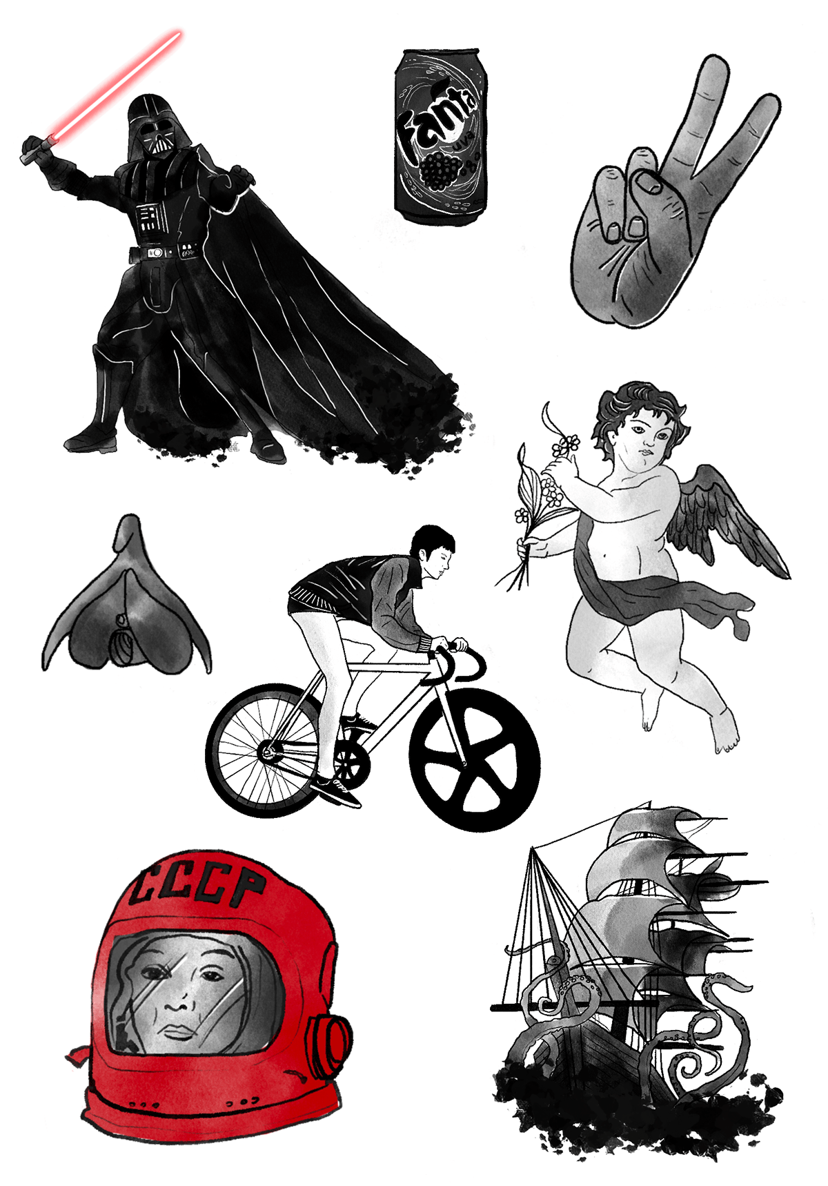 Serie of illustrations created during the COVID-19 pandemic, set against a backdrop of uncertainty and quarantine.