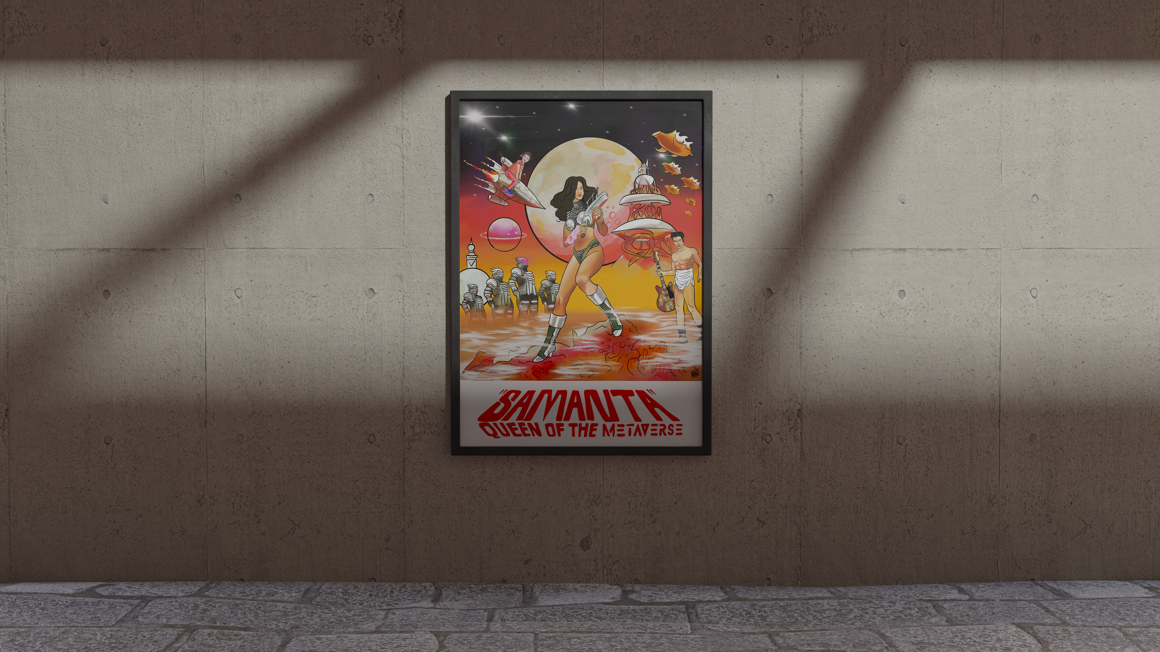 Custom illustration commissioned by a client, recreating the iconic Barbarella movie poster with added personalized references. The piece maintains the original retro-futuristic aesthetic while incorporating unique elements tailored to the client's vision. Carefully blended stylistic details pay homage to the original 1968 artwork, with enhancements and nods to contemporary pop culture and the client's specific inspirations.